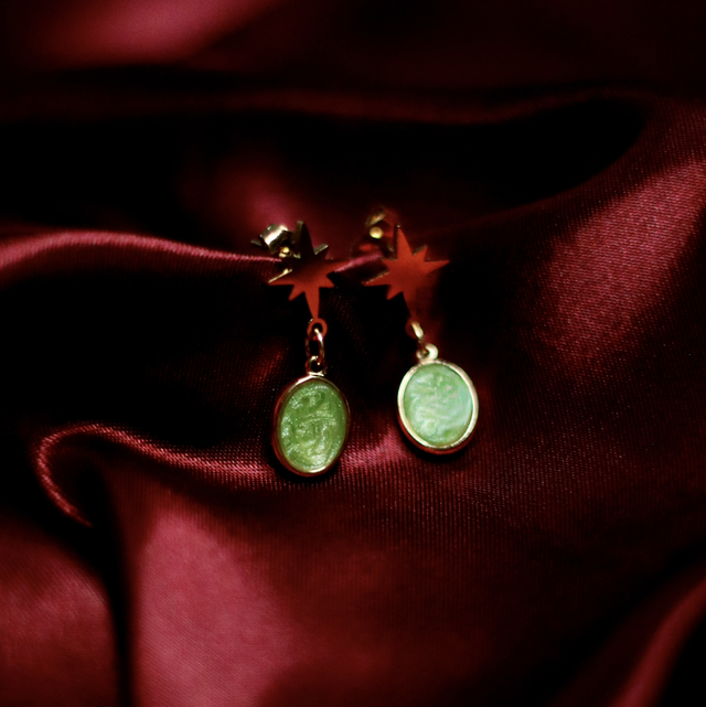 The Polaris drop earrings feature a radiant North Star inspired stud paired with a delicate oval charm. A dreamy choice for celestial souls, they bring a touch of starlit magic to any look.