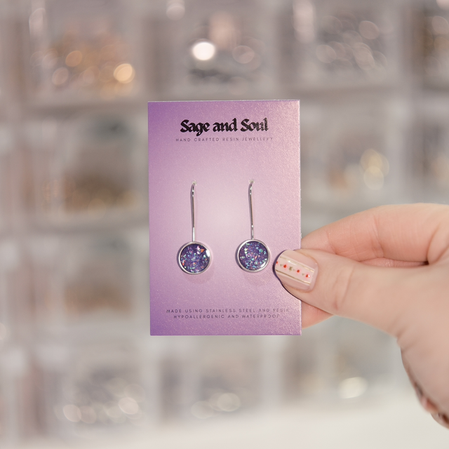All Sage and Soul jewellery is hand crafted using resin and stainless steel, making each piece hypoallergenic, water resistant, and as practical as it is beautiful.